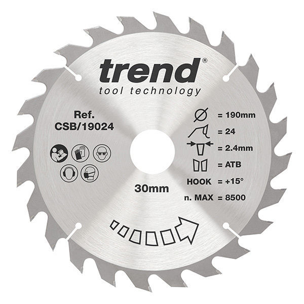 Trend Craft General Purpose Saw Blade 190mm Diameter x 24 Teeth x 30mm Bore x 2.6mm Kerf