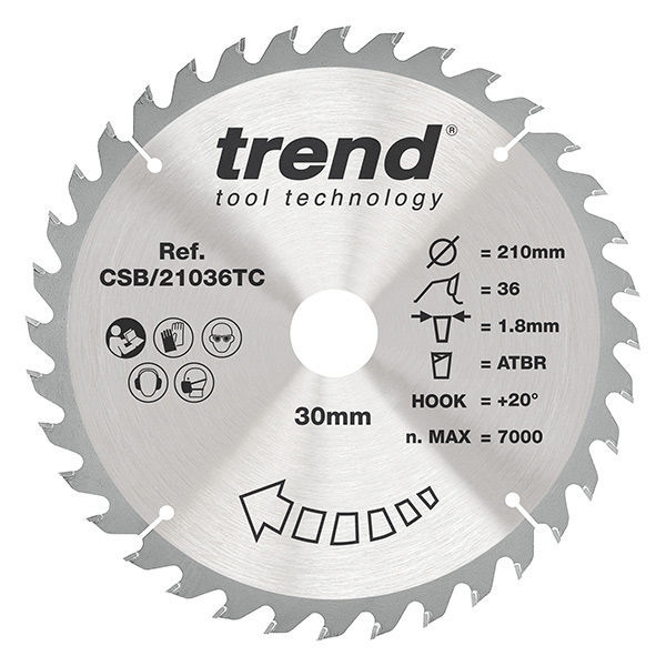 Trend Craft Thin Kerf Saw Blade 210mm Diameter x 36 Teeth x 30mm Bore x 1.8mm Kerf is a range of thin kerf tungsten carbide tipped combination blades for wood and wood-based materials. For use in cordless circular, plunge, and table saws, and available in a range of finishes. Ideal for ripping and trimming softwood, hardwood, plywood, MDF, and hardboard.